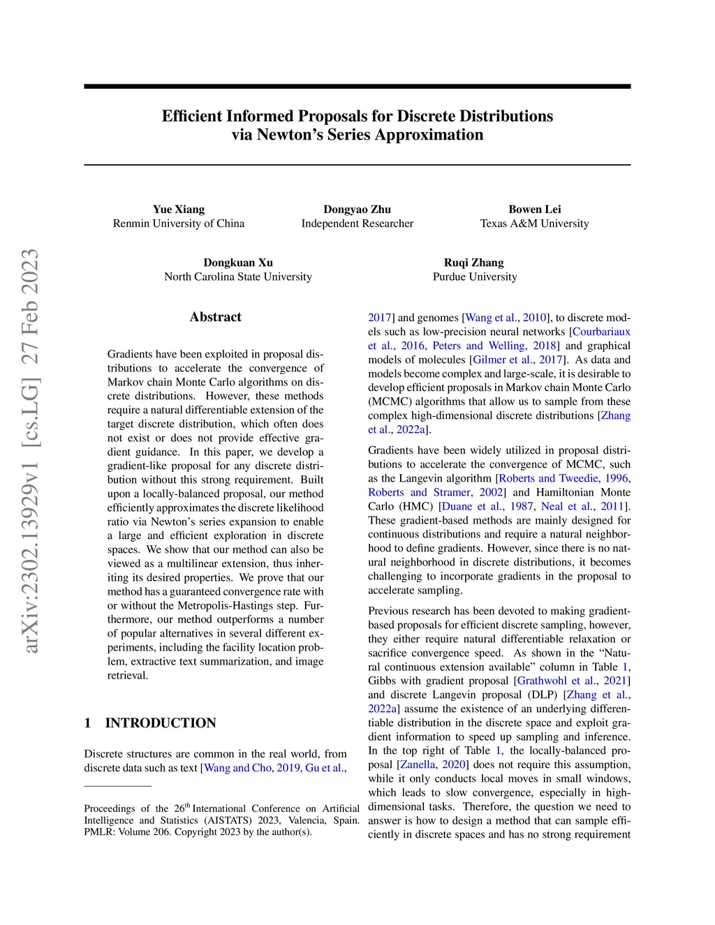 Gradients have been exploited in proposal distributions to accelerate the convergence of Markov chain Monte Carlo algorithms on discrete distributions. However, these methods require a natural differentiable extension of the target discrete distribution, which often does not exist or does not provide effective gradient guidance. In this paper, we develop a gradient-like proposal for any discrete distribution without this strong requirement. Built upon a locally-balanced proposal, our method efficiently approximates the discrete likelihood ratio via Newton's series expansion to enable a large and efficient exploration in discrete spaces. We show that our method can also be viewed as a multilinear extension, thus inheriting its desired properties. We prove that our method has a guaranteed convergence rate with or without the Metropolis-Hastings step. Furthermore, our method outperforms a number of popular alternatives in several different experiments, including the facility location problem, extractive text summarization, and image retrieval.