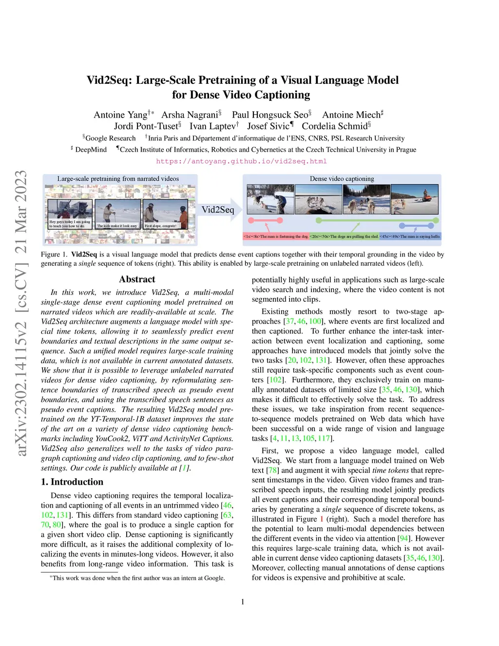 Vid2Seq: Large-Scale Pretraining of a Visual Language Model for Dense