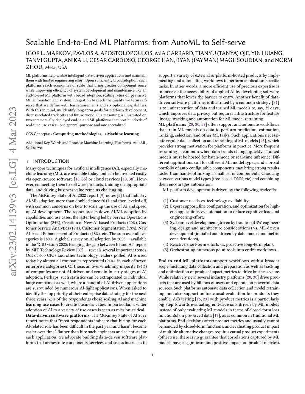 Scalable End-to-End ML Platforms: from AutoML to Self-serve