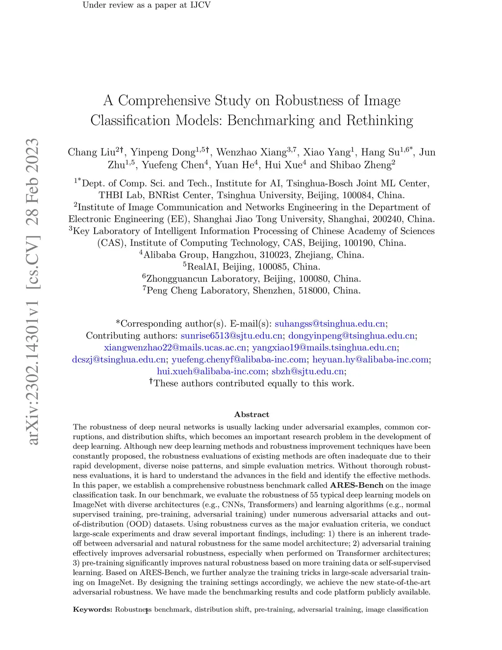 The robustness of deep neural networks is usually lacking under adversarial examples, common corruptions, and distribution shifts, which becomes an important research problem in the development of deep learning. Although new deep learning methods and robustness improvement techniques have been constantly proposed, the robustness evaluations of existing methods are often inadequate due to their rapid development, diverse noise patterns, and simple evaluation metrics. Without thorough robustness evaluations, it is hard to understand the advances in the field and identify the effective methods. In this paper, we establish a comprehensive robustness benchmark called \textbf{ARES-Bench} on the image classification task. In our benchmark, we evaluate the robustness of 55 typical deep learning models on ImageNet with diverse architectures (e.g., CNNs, Transformers) and learning algorithms (e.g., normal supervised training, pre-training, adversarial training) under numerous adversarial attacks and out-of-distribution (OOD) datasets. Using robustness curves as the major evaluation criteria, we conduct large-scale experiments and draw several important findings, including: 1) there is an inherent trade-off between adversarial and natural robustness for the same model architecture; 2) adversarial training effectively improves adversarial robustness, especially when performed on Transformer architectures; 3) pre-training significantly improves natural robustness based on more training data or self-supervised learning. Based on ARES-Bench, we further analyze the training tricks in large-scale adversarial training on ImageNet. By designing the training settings accordingly, we achieve the new state-of-the-art adversarial robustness. We have made the benchmarking results and code platform publicly available.