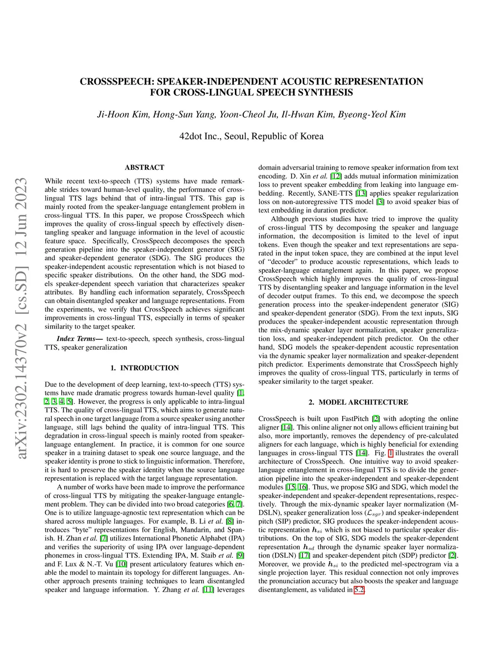 CrossSpeech: Speaker-independent Acoustic Representation for