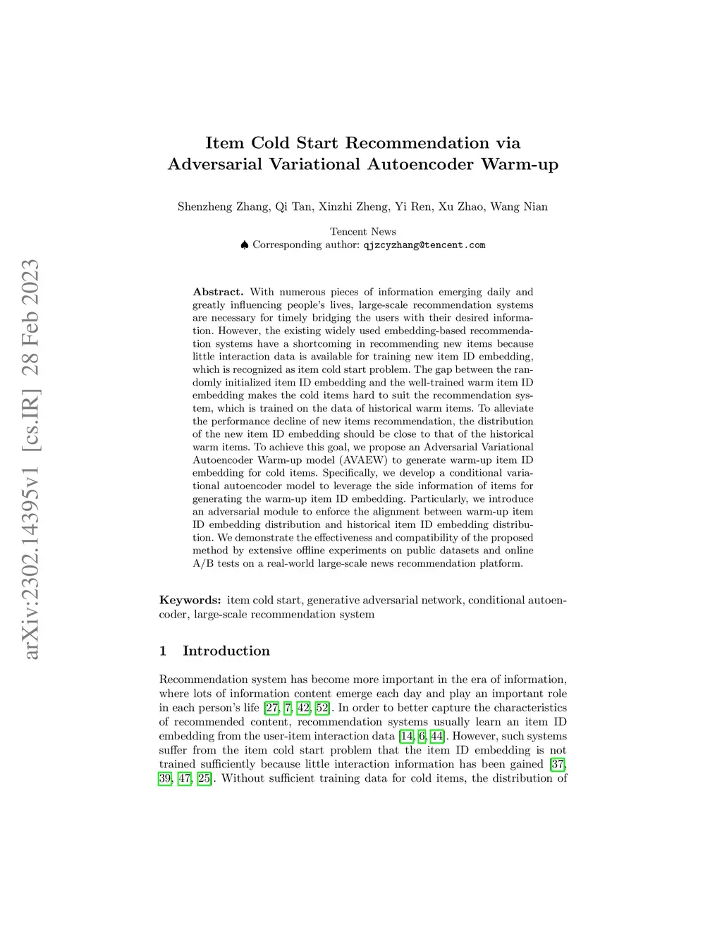 Item Cold Start Recommendation via Adversarial Variational Auto-encoder