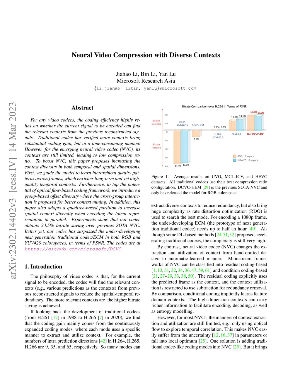 For any video codecs, the coding efficiency highly relies on whether the current signal to be encoded can find the relevant contexts from the previous reconstructed signals. Traditional codec has verified more contexts bring substantial coding gain, but in a time-consuming manner. However, for the emerging neural video codec (NVC), its contexts are still limited, leading to low compression ratio. To boost NVC, this paper proposes increasing the context diversity in both temporal and spatial dimensions. First, we guide the model to learn hierarchical quality patterns across frames, which enriches long-term and yet high-quality temporal contexts. Furthermore, to tap the potential of optical flow-based coding framework, we introduce a group-based offset diversity where the cross-group interaction is proposed for better context mining. In addition, this paper also adopts a quadtree-based partition to increase spatial context diversity when encoding the latent representation in parallel. Experiments show that our codec obtains 23.5% bitrate saving over previous SOTA NVC. Better yet, our codec has surpassed the under-developing next generation traditional codec/ECM in both RGB and YUV420 colorspaces, in terms of PSNR. The codes are at https://github.com/microsoft/DCVC.