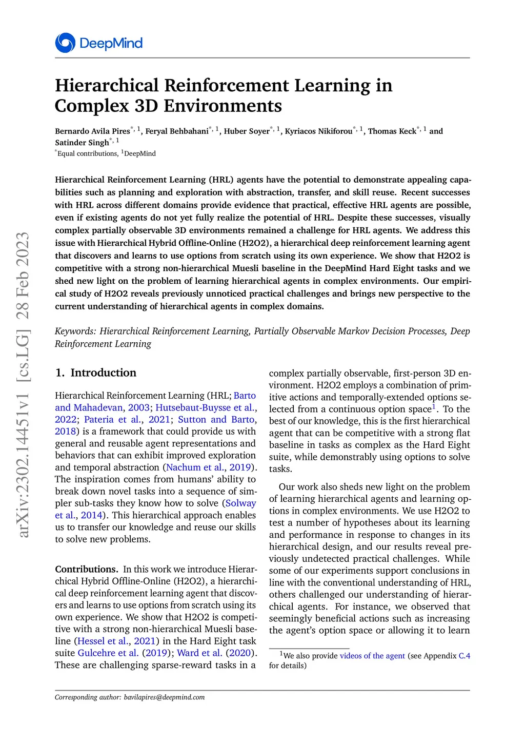Hierarchical Reinforcement Learning (HRL) agents have the potential to demonstrate appealing capabilities such as planning and exploration with abstraction, transfer, and skill reuse. Recent successes with HRL across different domains provide evidence that practical, effective HRL agents are possible, even if existing agents do not yet fully realize the potential of HRL. Despite these successes, visually complex partially observable 3D environments remained a challenge for HRL agents. We address this issue with Hierarchical Hybrid Offline-Online (H2O2), a hierarchical deep reinforcement learning agent that discovers and learns to use options from scratch using its own experience. We show that H2O2 is competitive with a strong non-hierarchical Muesli baseline in the DeepMind Hard Eight tasks and we shed new light on the problem of learning hierarchical agents in complex environments. Our empirical study of H2O2 reveals previously unnoticed practical challenges and brings new perspective to the current understanding of hierarchical agents in complex domains.