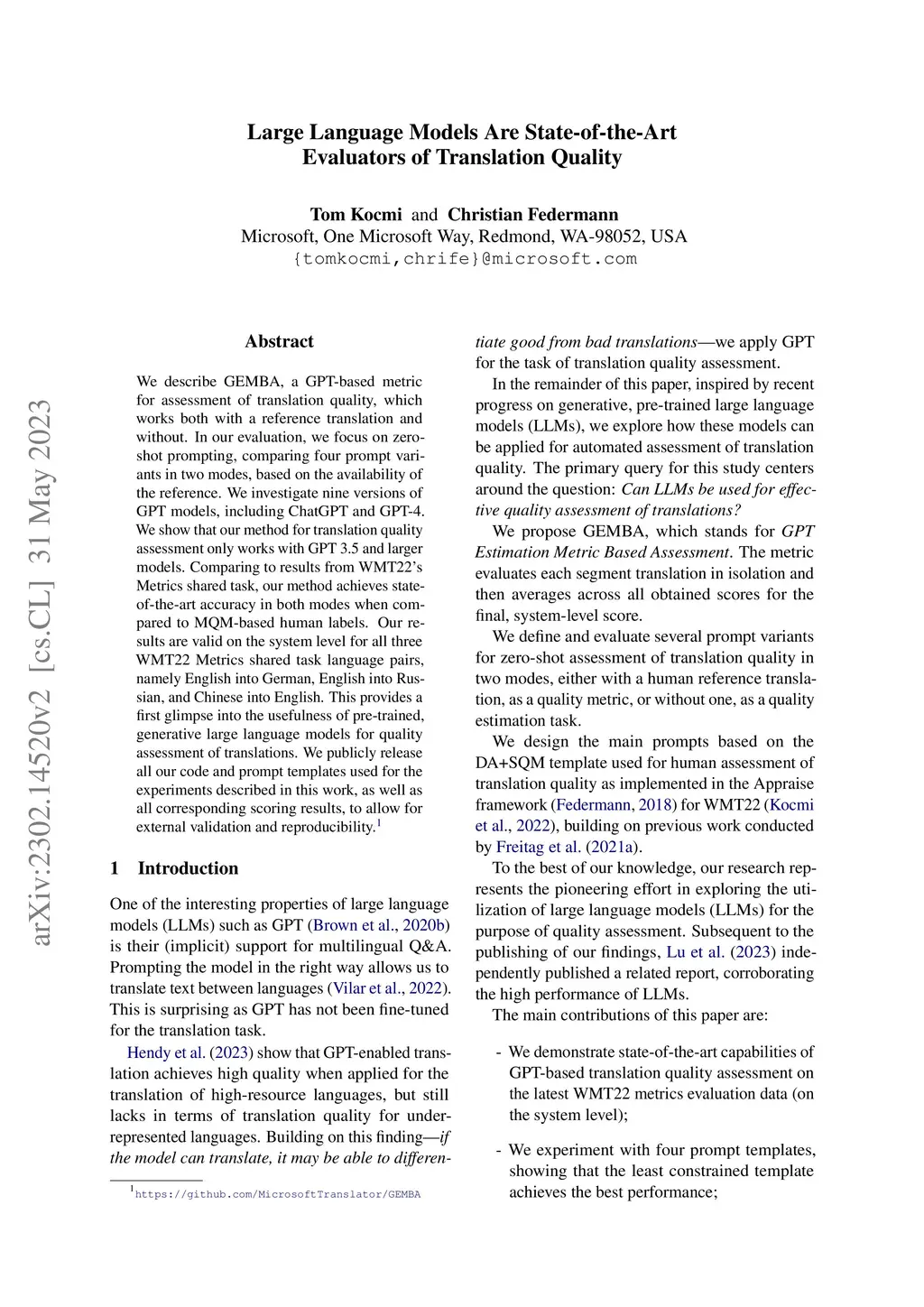 Large Language Models Are State-of-the-Art Evaluators of Translation