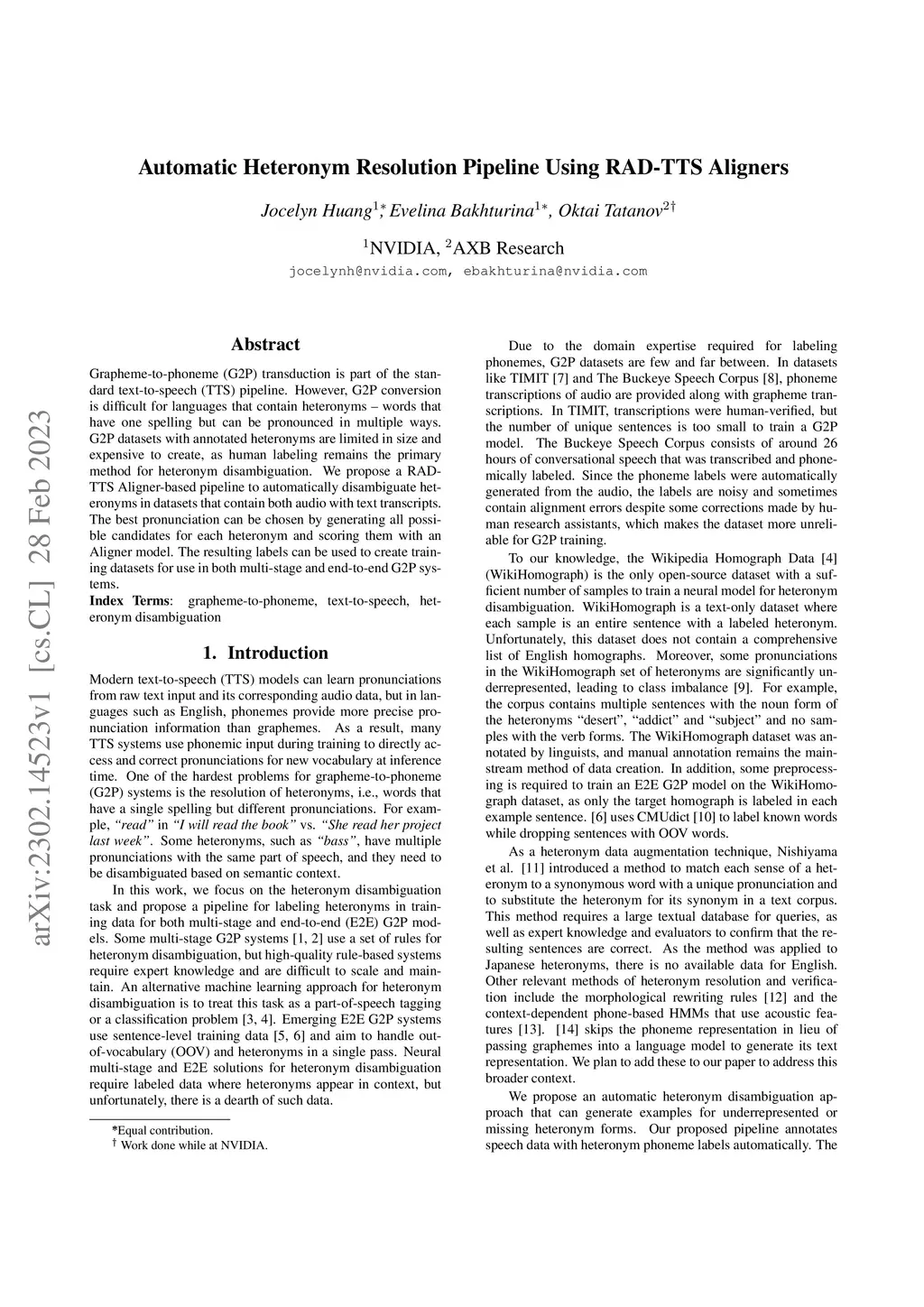 Automatic Heteronym Resolution Pipeline Using RAD-TTS Aligners
