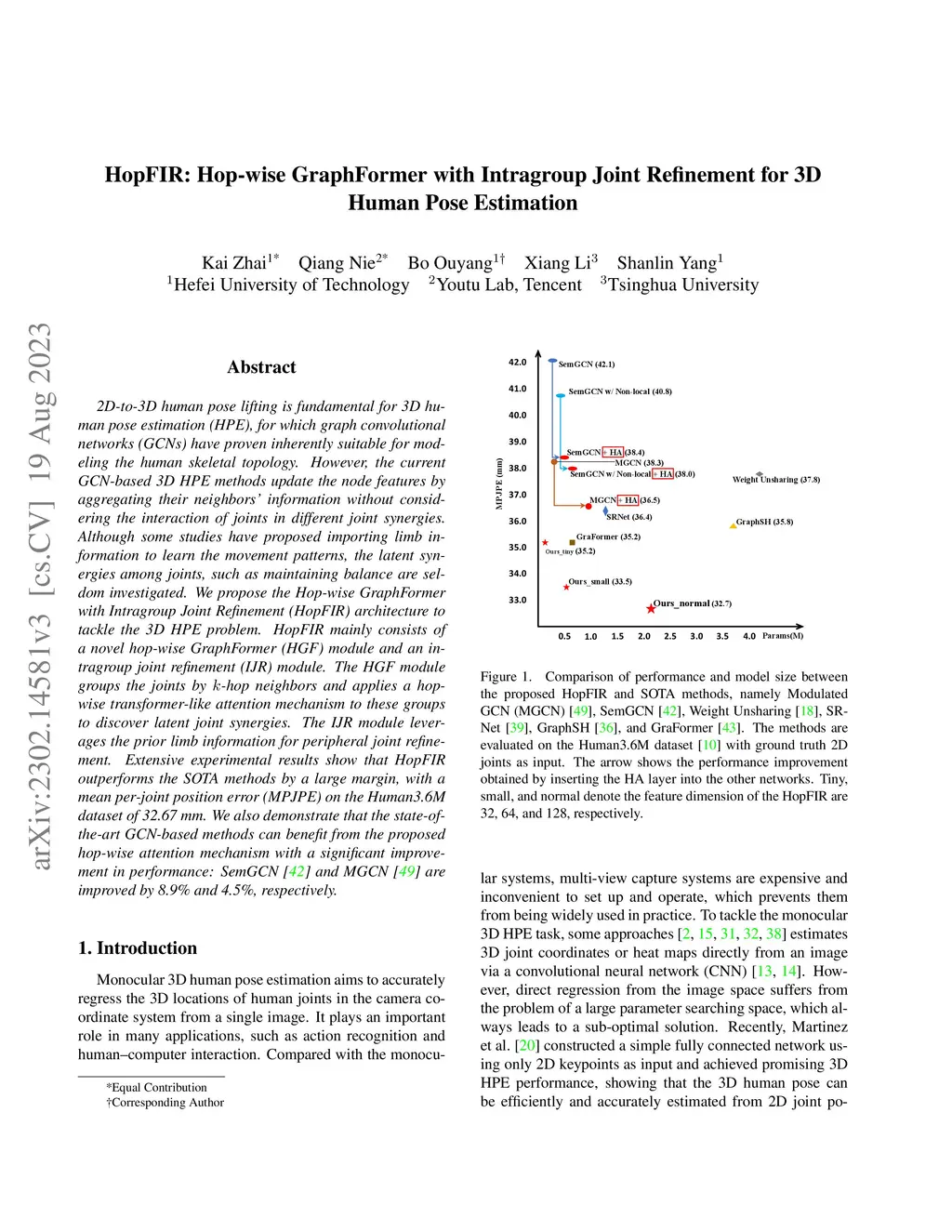 HopFIR: Hop-wise GraphFormer with Intragroup Joint Refinement for 3D