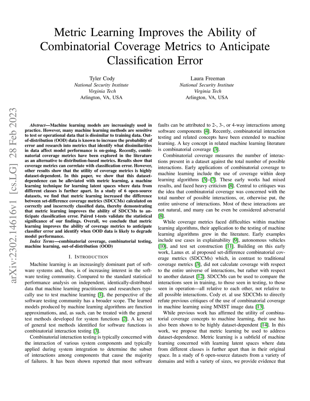 Machine learning models are increasingly used in practice. However, many machine learning methods are sensitive to test or operational data that is dissimilar to training data. Out-of-distribution (OOD) data is known to increase the probability of error and research into metrics that identify what dissimilarities in data affect model performance is on-going. Recently, combinatorial coverage metrics have been explored in the literature as an alternative to distribution-based metrics. Results show that coverage metrics can correlate with classification error. However, other results show that the utility of coverage metrics is highly dataset-dependent. In this paper, we show that this dataset-dependence can be alleviated with metric learning, a machine learning technique for learning latent spaces where data from different classes is further apart. In a study of 6 open-source datasets, we find that metric learning increased the difference between set-difference coverage metrics (SDCCMs) calculated on correctly and incorrectly classified data, thereby demonstrating that metric learning improves the ability of SDCCMs to anticipate classification error. Paired t-tests validate the statistical significance of our findings. Overall, we conclude that metric learning improves the ability of coverage metrics to anticipate classifier error and identify when OOD data is likely to degrade model performance.