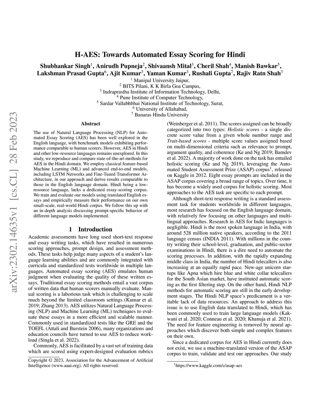The use of Natural Language Processing (NLP) for Automated Essay Scoring (AES) has been well explored in the English language, with benchmark models exhibiting performance comparable to human scorers. However, AES in Hindi and other low-resource languages remains unexplored. In this study, we reproduce and compare state-of-the-art methods for AES in the Hindi domain. We employ classical feature-based Machine Learning (ML) and advanced end-to-end models, including LSTM Networks and Fine-Tuned Transformer Architecture, in our approach and derive results comparable to those in the English language domain. Hindi being a low-resource language, lacks a dedicated essay-scoring corpus. We train and evaluate our models using translated English essays and empirically measure their performance on our own small-scale, real-world Hindi corpus. We follow this up with an in-depth analysis discussing prompt-specific behavior of different language models implemented.