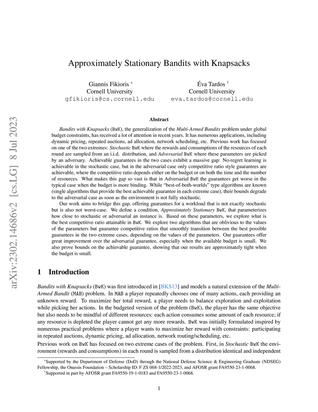 Bandits with Knapsacks (BwK), the generalization of the Bandits problem under global budget constraints, has received a lot of attention in recent years. Previous work has focused on one of the two extremes: Stochastic BwK where the rewards and consumptions of the resources of each round are sampled from an i.i.d. distribution, and Adversarial BwK where these parameters are picked by an adversary. Achievable guarantees in the two cases exhibit a massive gap: No-regret learning is achievable in the stochastic case, but in the adversarial case only competitive ratio style guarantees are achievable, where the competitive ratio depends either on the budget or on both the time and the number of resources. What makes this gap so vast is that in Adversarial BwK the guarantees get worse in the typical case when the budget is more binding. While ``best-of-both-worlds'' type algorithms are known (single algorithms that provide the best achievable guarantee in each extreme case), their bounds degrade to the adversarial case as soon as the environment is not fully stochastic. Our work aims to bridge this gap, offering guarantees for a workload that is not exactly stochastic but is also not worst-case. We define a condition, Approximately Stationary BwK, that parameterizes how close to stochastic or adversarial an instance is. Based on these parameters, we explore what is the best competitive ratio attainable in BwK. We explore two algorithms that are oblivious to the values of the parameters but guarantee competitive ratios that smoothly transition between the best possible guarantees in the two extreme cases, depending on the values of the parameters. Our guarantees offer great improvement over the adversarial guarantee, especially when the available budget is small. We also prove bounds on the achievable guarantee, showing that our results are approximately tight when the budget is small.