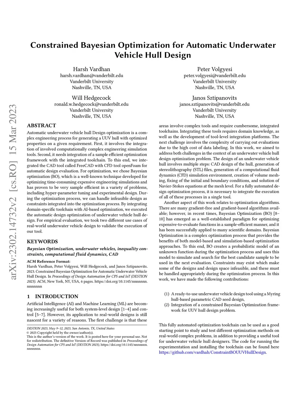 Constrained Bayesian Optimization for Automatic Underwater Vehicle Hull