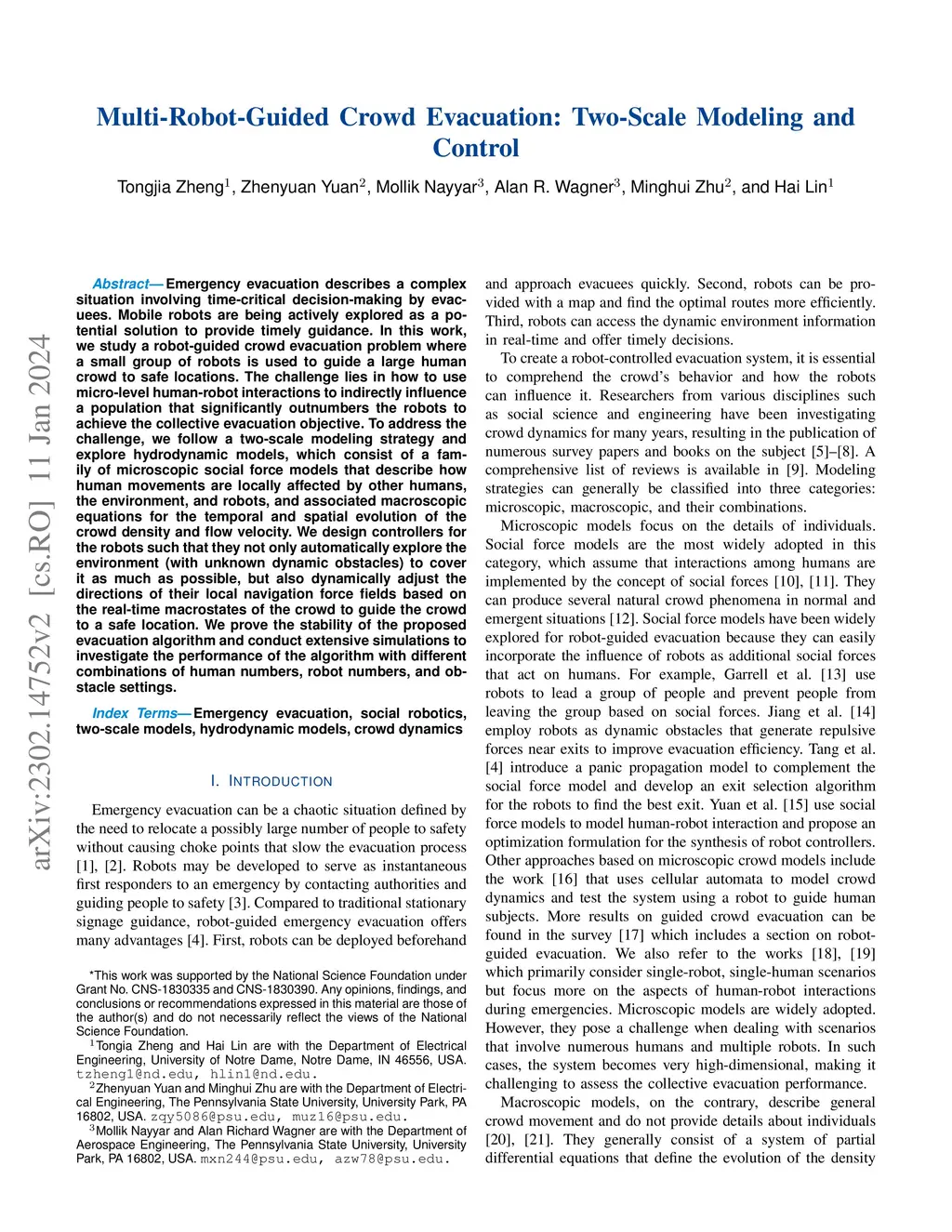 Multi-Robot-Guided Crowd Evacuation: Two-Scale Modeling and Control