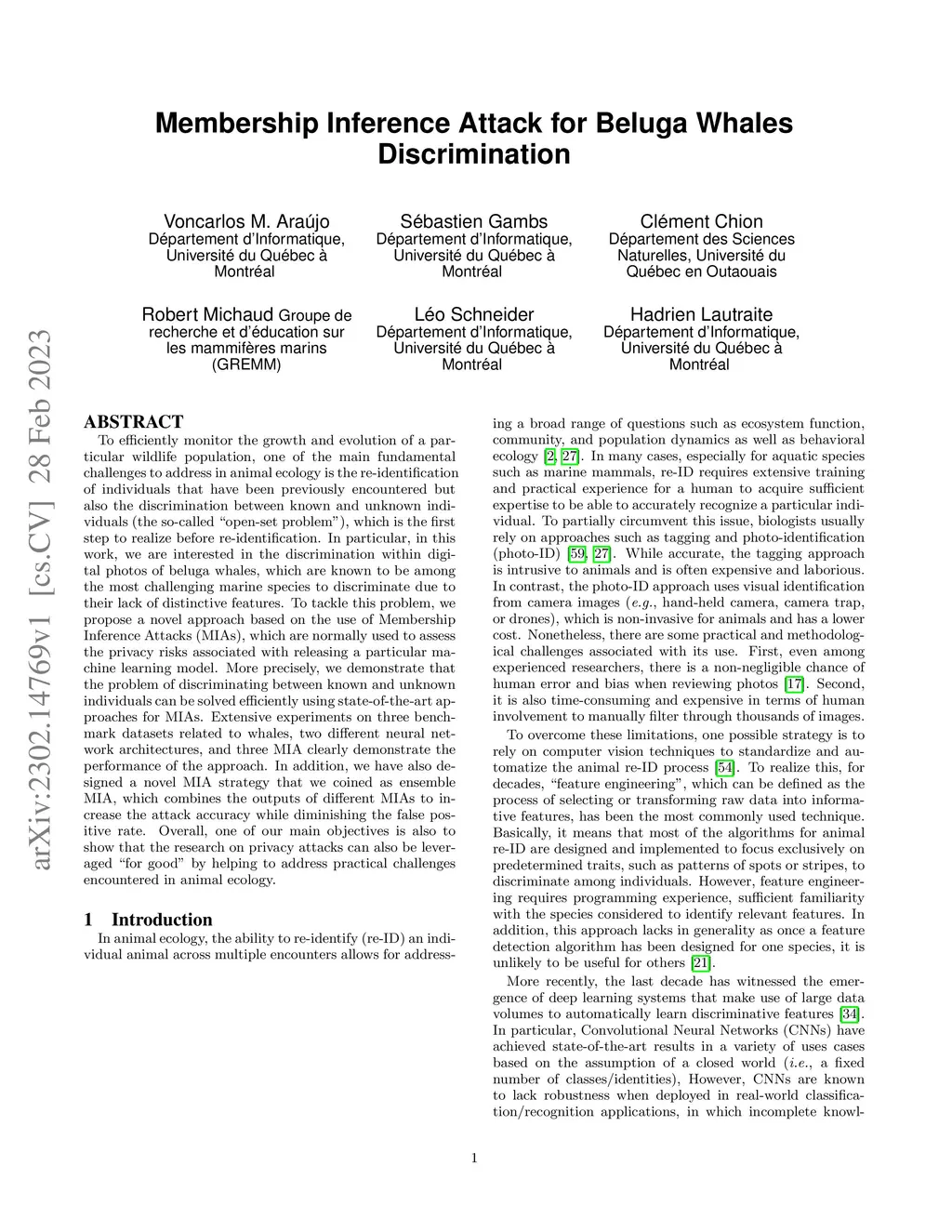 Membership Inference Attack for Beluga Whales Discrimination