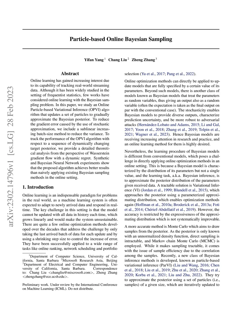 Online optimization has gained increasing interest due to its capability of tracking real-world streaming data. Although online optimization methods have been widely studied in the setting of frequentist statistics, few works have considered online optimization with the Bayesian sampling problem. In this paper, we study an Online Particle-based Variational Inference (OPVI) algorithm that uses a set of particles to represent the approximating distribution. To reduce the gradient error caused by the use of stochastic approximation, we include a sublinear increasing batch-size method to reduce the variance. To track the performance of the OPVI algorithm with respect to a sequence of dynamically changing target posterior, we provide a detailed theoretical analysis from the perspective of Wasserstein gradient flow with a dynamic regret. Synthetic and Bayesian Neural Network experiments show that the proposed algorithm achieves better results than naively applying existing Bayesian sampling methods in the online setting.