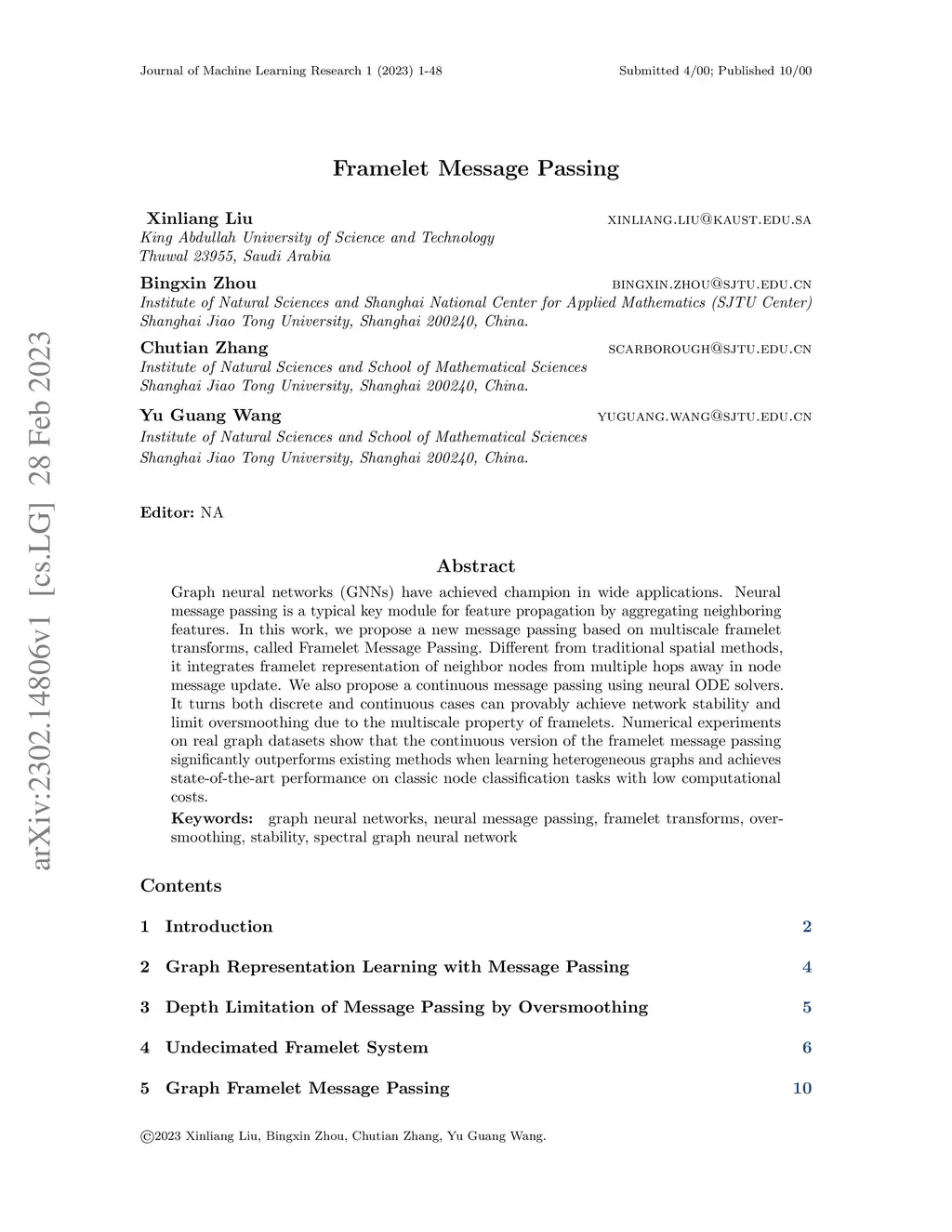 Graph neural networks (GNNs) have achieved champion in wide applications. Neural message passing is a typical key module for feature propagation by aggregating neighboring features. In this work, we propose a new message passing based on multiscale framelet transforms, called Framelet Message Passing. Different from traditional spatial methods, it integrates framelet representation of neighbor nodes from multiple hops away in node message update. We also propose a continuous message passing using neural ODE solvers. It turns both discrete and continuous cases can provably achieve network stability and limit oversmoothing due to the multiscale property of framelets. Numerical experiments on real graph datasets show that the continuous version of the framelet message passing significantly outperforms existing methods when learning heterogeneous graphs and achieves state-of-the-art performance on classic node classification tasks with low computational costs.