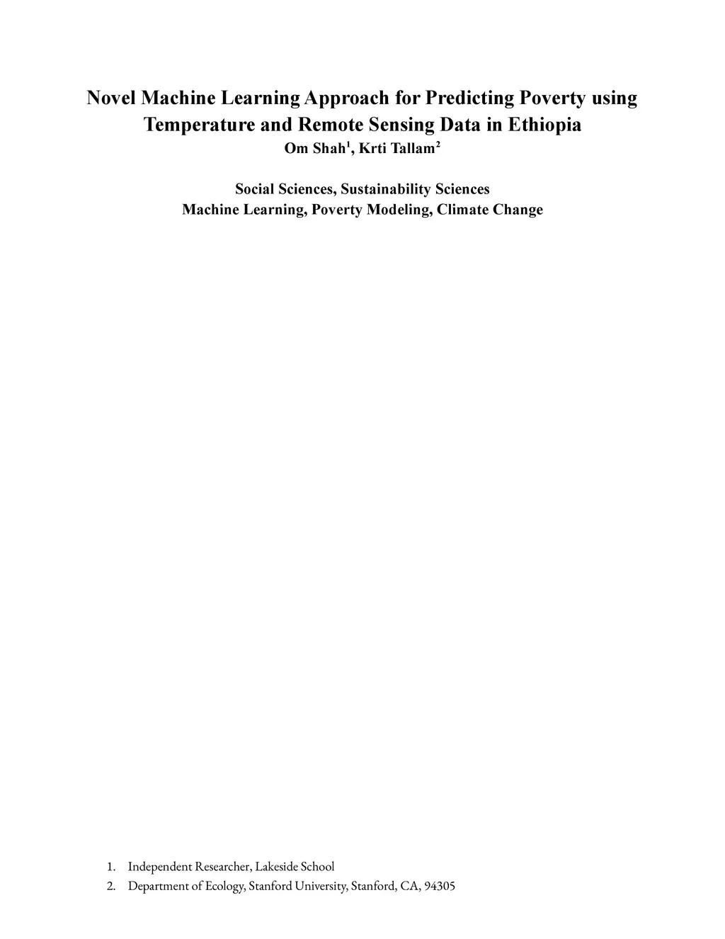 Novel Machine Learning Approach for Predicting Poverty using Temperature