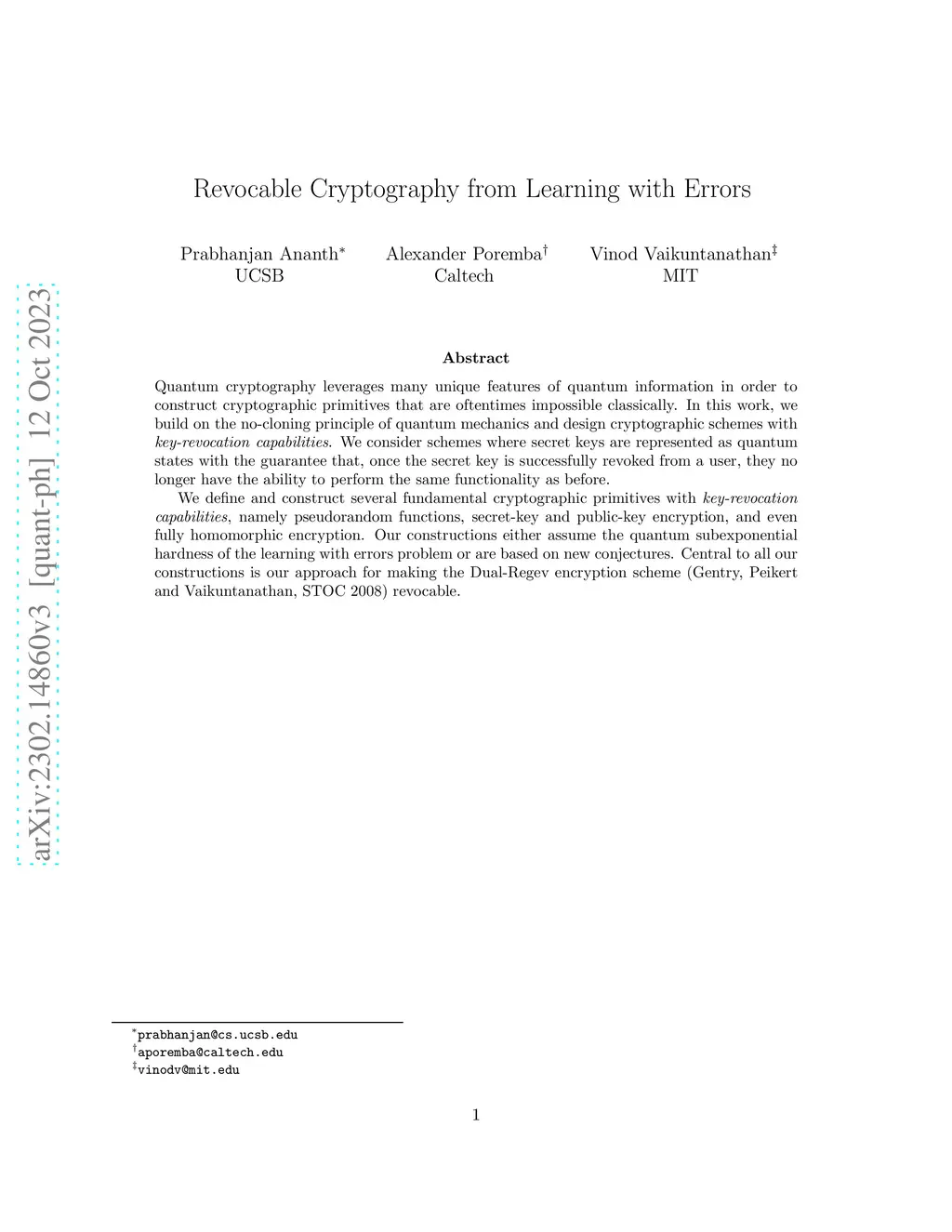 Revocable Cryptography from Learning with Errors