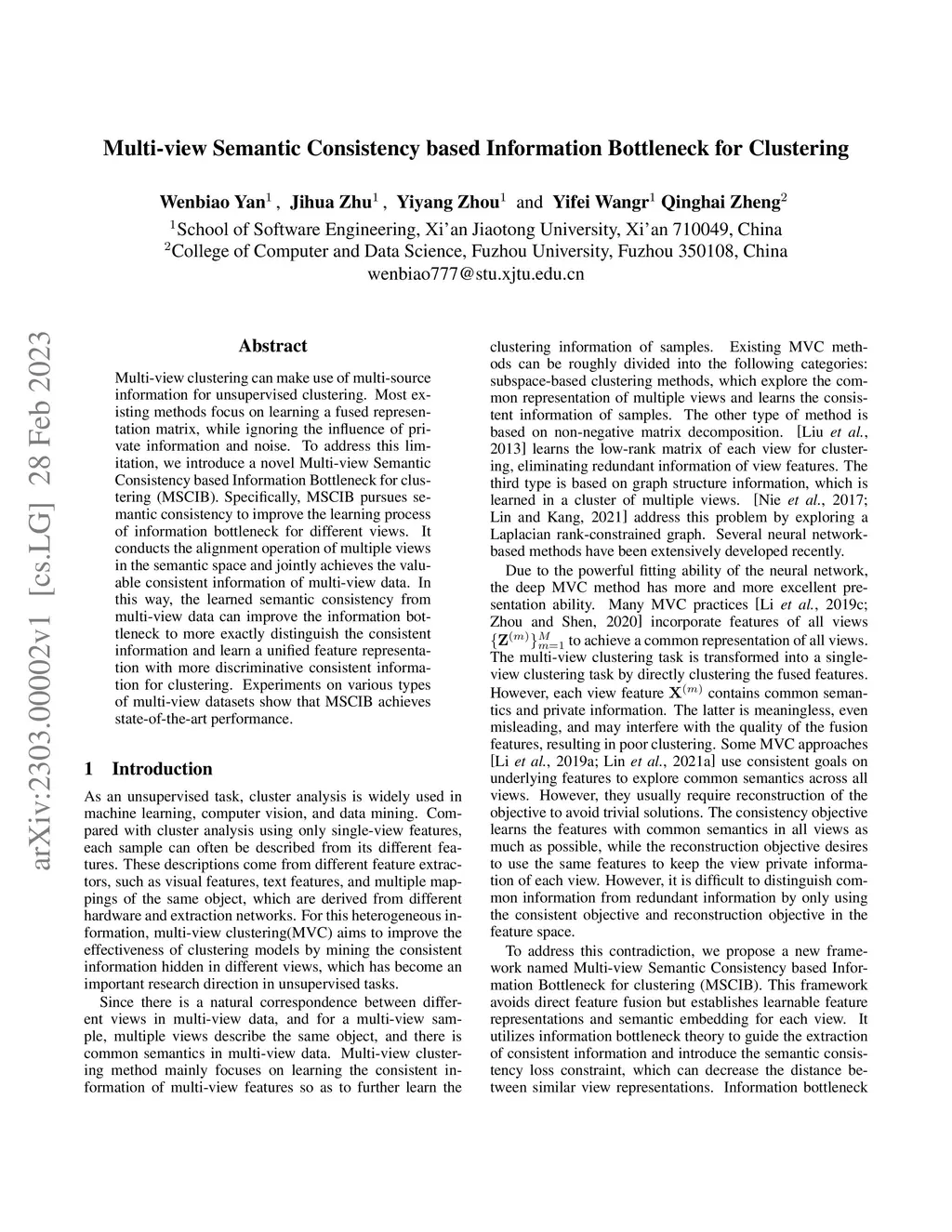 Multi-view clustering can make use of multi-source information for unsupervised clustering. Most existing methods focus on learning a fused representation matrix, while ignoring the influence of private information and noise. To address this limitation, we introduce a novel Multi-view Semantic Consistency based Information Bottleneck for clustering (MSCIB). Specifically, MSCIB pursues semantic consistency to improve the learning process of information bottleneck for different views. It conducts the alignment operation of multiple views in the semantic space and jointly achieves the valuable consistent information of multi-view data. In this way, the learned semantic consistency from multi-view data can improve the information bottleneck to more exactly distinguish the consistent information and learn a unified feature representation with more discriminative consistent information for clustering. Experiments on various types of multi-view datasets show that MSCIB achieves state-of-the-art performance.