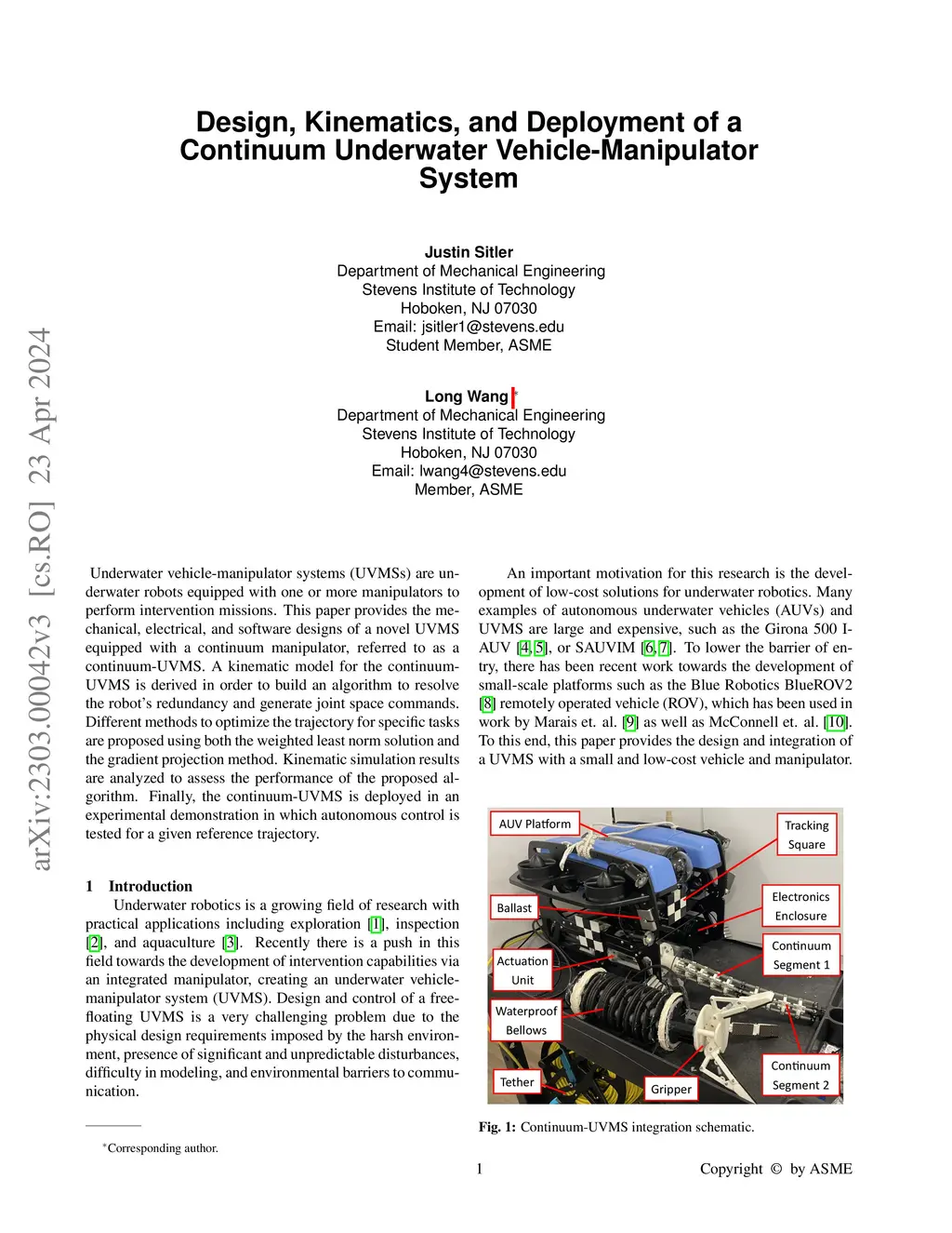 Design, Kinematics, and Deployment of a Continuum Underwater