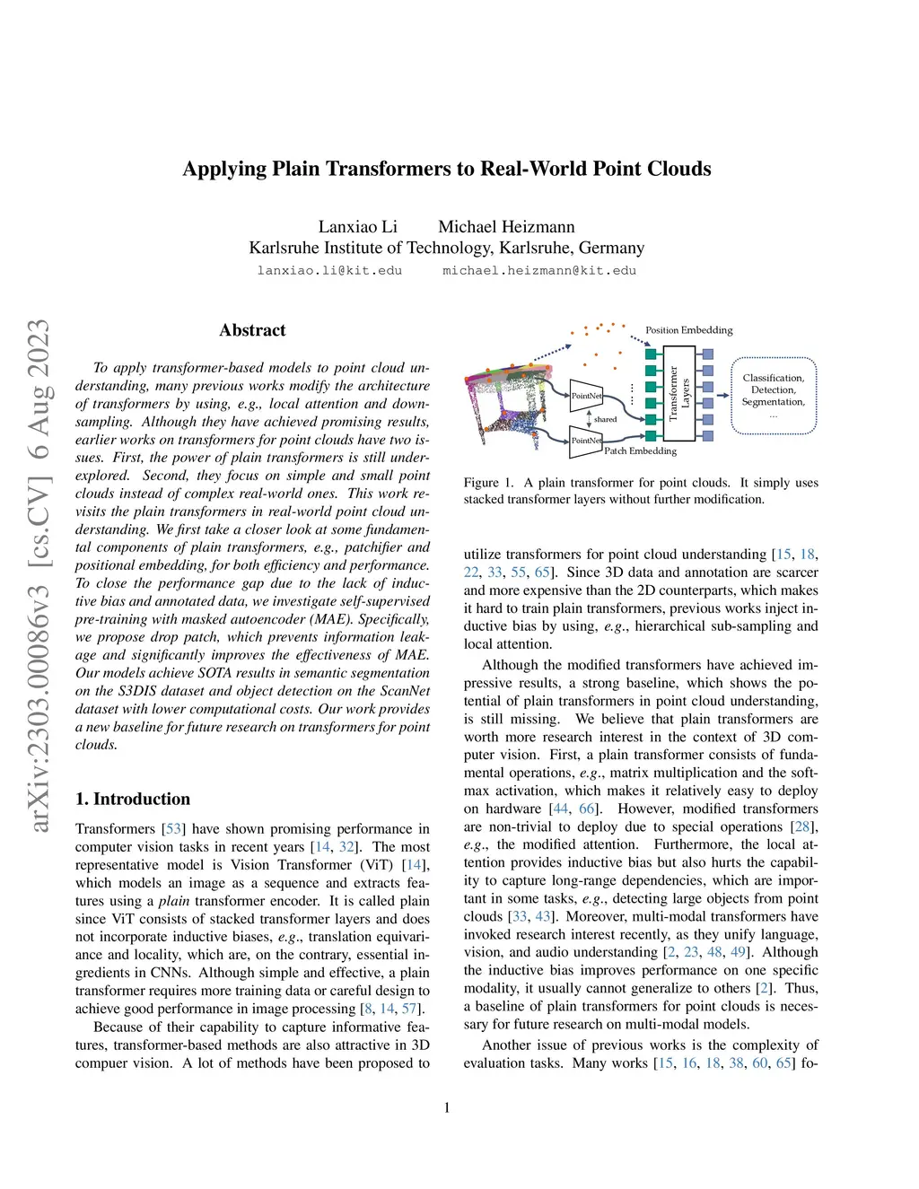 To apply transformer-based models to point cloud understanding, many previous works modify the architecture of transformers by using, e.g., local attention and down-sampling. Although they have achieved promising results, earlier works on transformers for point clouds have two issues. First, the power of plain transformers is still under-explored. Second, they focus on simple and small point clouds instead of complex real-world ones. This work revisits the plain transformers in real-world point cloud understanding. We first take a closer look at some fundamental components of plain transformers, e.g., patchifier and positional embedding, for both efficiency and performance. To close the performance gap due to the lack of inductive bias and annotated data, we investigate self-supervised pre-training with masked autoencoder (MAE). Specifically, we propose drop patch, which prevents information leakage and significantly improves the effectiveness of MAE. Our models achieve SOTA results in semantic segmentation on the S3DIS dataset and object detection on the ScanNet dataset with lower computational costs. Our work provides a new baseline for future research on transformers for point clouds.