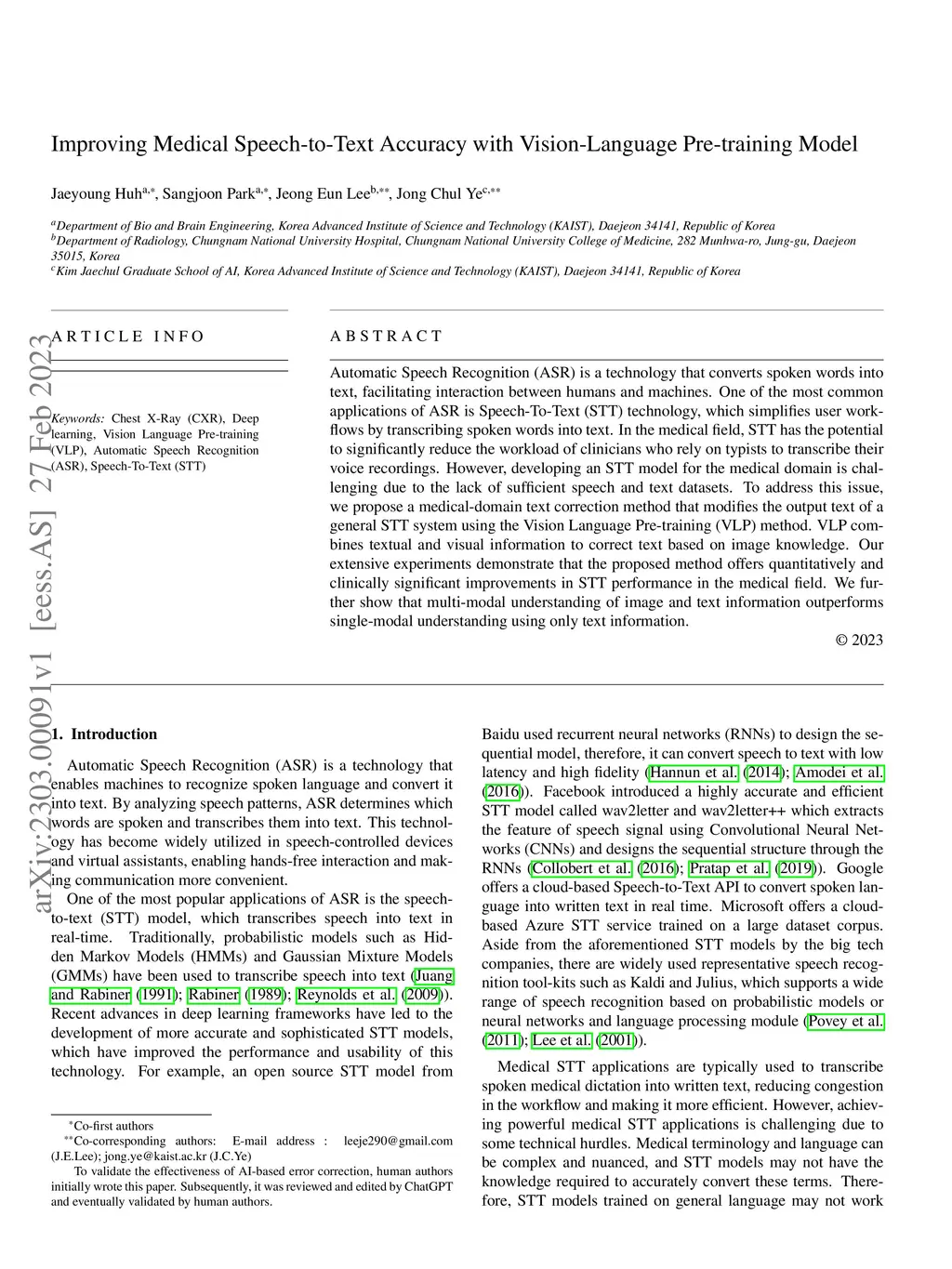 Automatic Speech Recognition (ASR) is a technology that converts spoken words into text, facilitating interaction between humans and machines. One of the most common applications of ASR is Speech-To-Text (STT) technology, which simplifies user workflows by transcribing spoken words into text. In the medical field, STT has the potential to significantly reduce the workload of clinicians who rely on typists to transcribe their voice recordings. However, developing an STT model for the medical domain is challenging due to the lack of sufficient speech and text datasets. To address this issue, we propose a medical-domain text correction method that modifies the output text of a general STT system using the Vision Language Pre-training (VLP) method. VLP combines textual and visual information to correct text based on image knowledge. Our extensive experiments demonstrate that the proposed method offers quantitatively and clinically significant improvements in STT performance in the medical field. We further show that multi-modal understanding of image and text information outperforms single-modal understanding using only text information.
