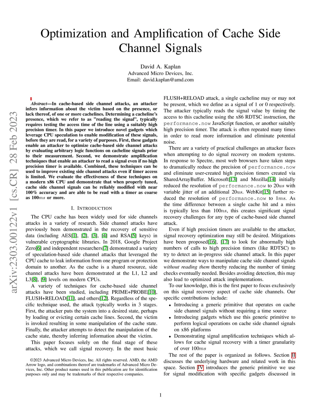 In cache-based side channel attacks, an attacker infers information about the victim based on the presence, or lack thereof, of one or more cachelines. Determining a cacheline's presence, which we refer to as "reading the signal", typically requires testing the access time of the line using a suitably high precision timer. In this paper we introduce novel gadgets which leverage CPU speculation to enable modification of these signals, before they are read, for a variety of purposes. First, these gadgets enable an attacker to optimize cache-based side channel attacks by evaluating arbitrary logic functions on cacheline signals prior to their measurement. Second, we demonstrate amplification techniques that enable an attacker to read a signal even if no high precision timer is available. Combined, these techniques can be used to improve existing side channel attacks even if timer access is limited. We evaluate the effectiveness of these techniques on a modern x86 CPU and demonstrate that when properly tuned, cache side channel signals can be reliably modified with near 100% accuracy and are able to be read with a timer as coarse as 100ms or more.