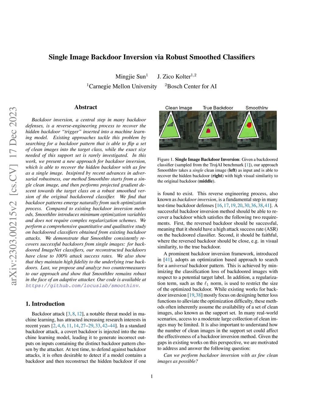 Single Image Backdoor Inversion via Robust Smoothed Classifiers