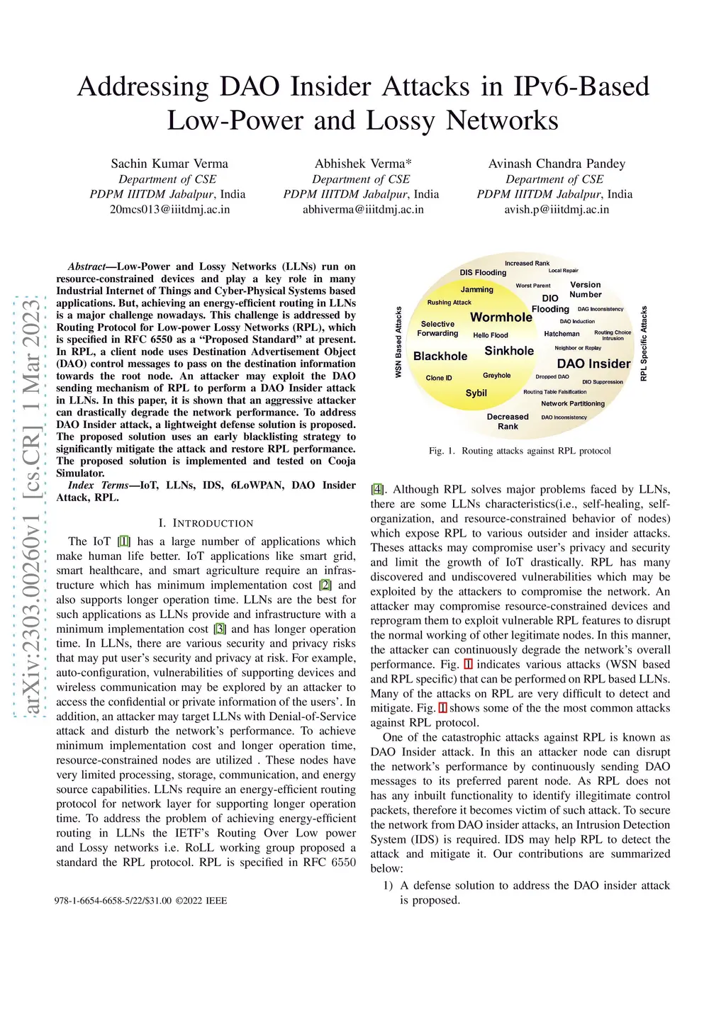 Addressing DAO Insider Attacks in IPv6-Based Low-Power and Lossy