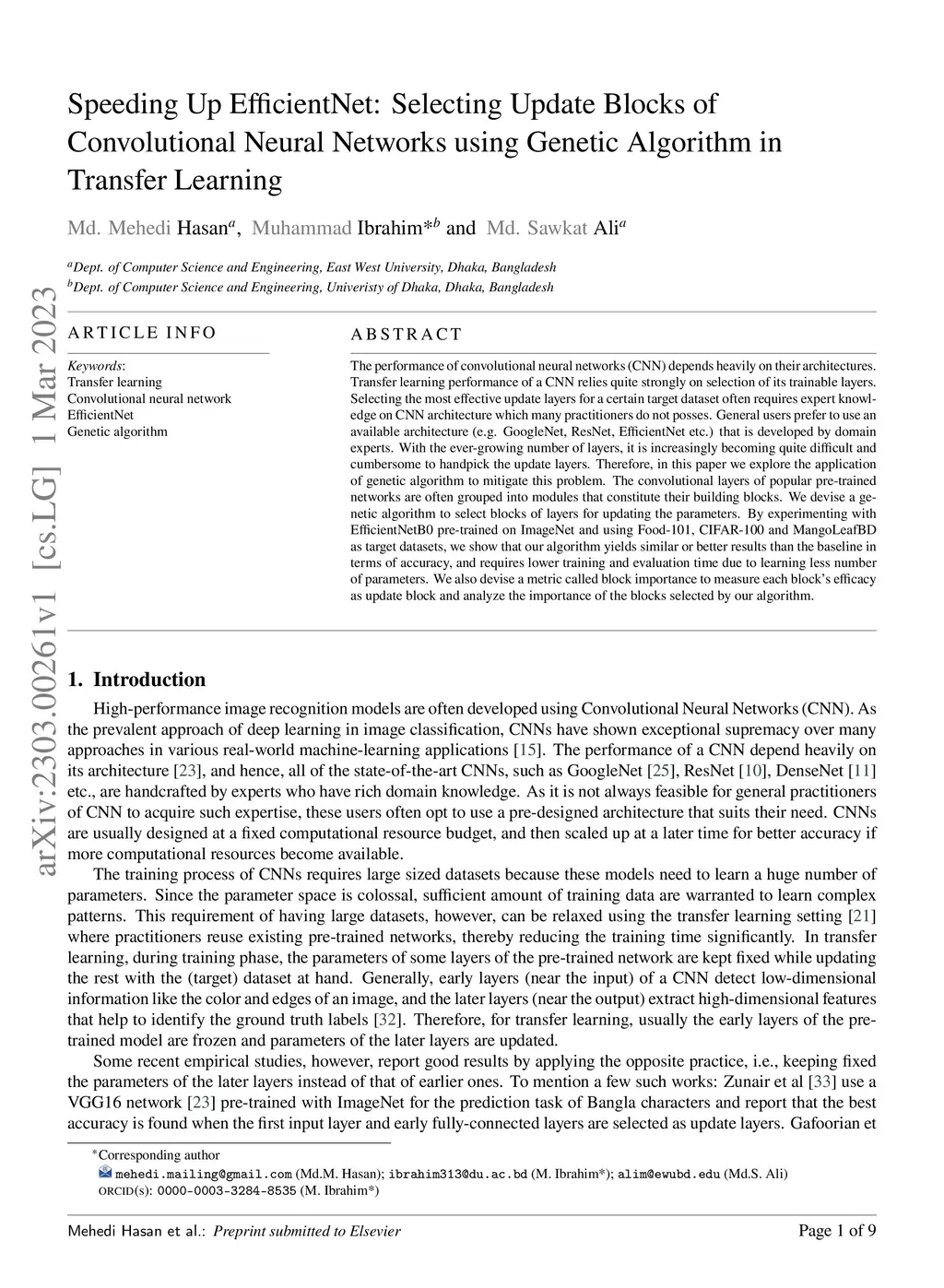 Speeding Up EfficientNet: Selecting Update Blocks of Convolutional