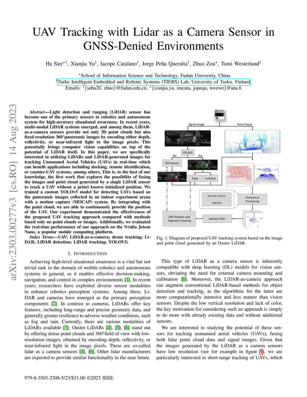 UAV Tracking with Lidar as a Camera Sensors in GNSS-Denied Environments