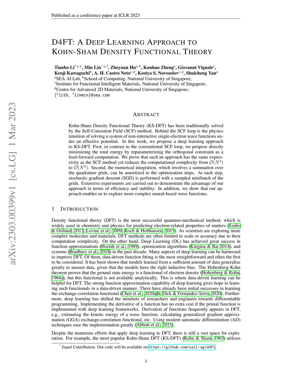 D4FT: A Deep Learning Approach to Kohn-Sham Density Functional Theory