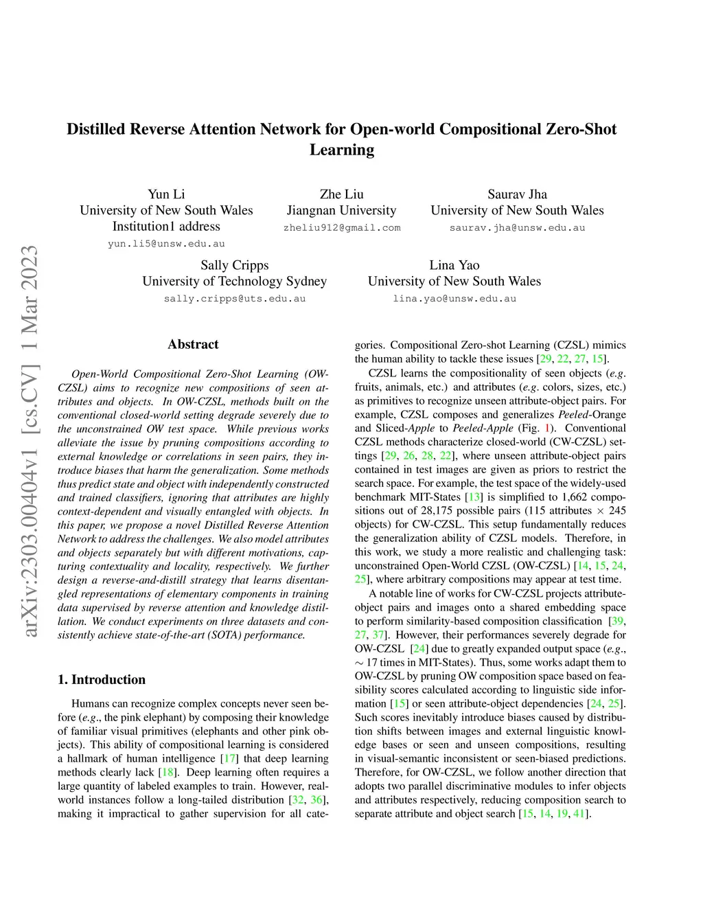 Distilled Reverse Attention Network for Open-world Compositional