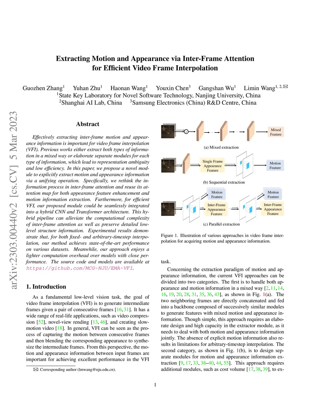 Extracting Motion and Appearance via Inter-Frame Attention for Efficient Video Frame Interpolation