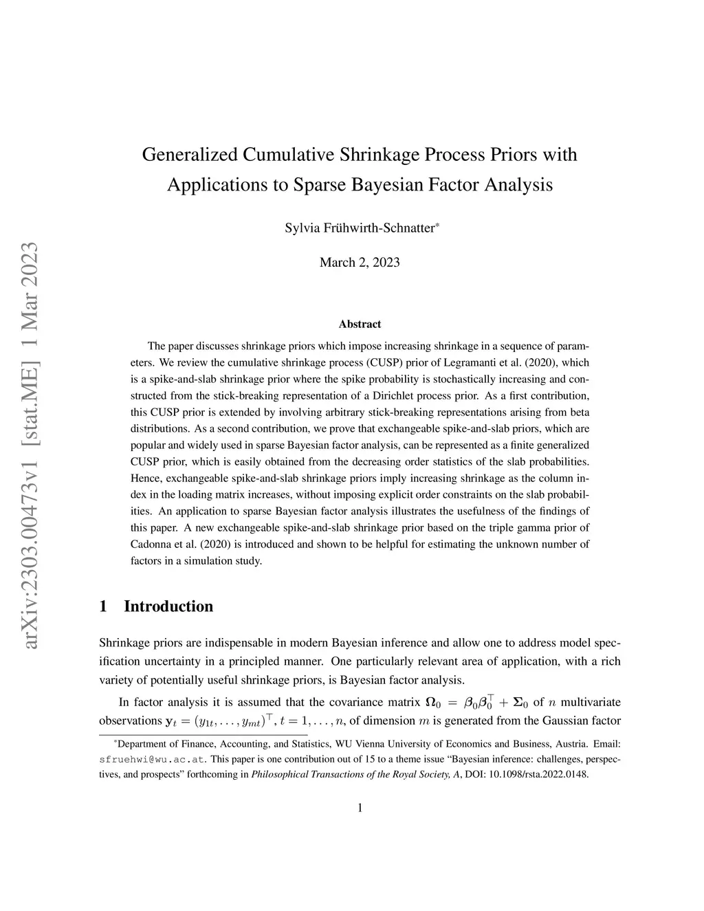 The paper discusses shrinkage priors which impose increasing shrinkage in a sequence of parameters. We review the cumulative shrinkage process (CUSP) prior of Legramanti et al. (2020), which is a spike-and-slab shrinkage prior where the spike probability is stochastically increasing and constructed from the stick-breaking representation of a Dirichlet process prior. As a first contribution, this CUSP prior is extended by involving arbitrary stick-breaking representations arising from beta distributions. As a second contribution, we prove that exchangeable spike-and-slab priors, which are popular and widely used in sparse Bayesian factor analysis, can be represented as a finite generalized CUSP prior, which is easily obtained from the decreasing order statistics of the slab probabilities. Hence, exchangeable spike-and-slab shrinkage priors imply increasing shrinkage as the column index in the loading matrix increases, without imposing explicit order constraints on the slab probabilities. An application to sparse Bayesian factor analysis illustrates the usefulness of the findings of this paper. A new exchangeable spike-and-slab shrinkage prior based on the triple gamma prior of Cadonna et al. (2020) is introduced and shown to be helpful for estimating the unknown number of factors in a simulation study.
