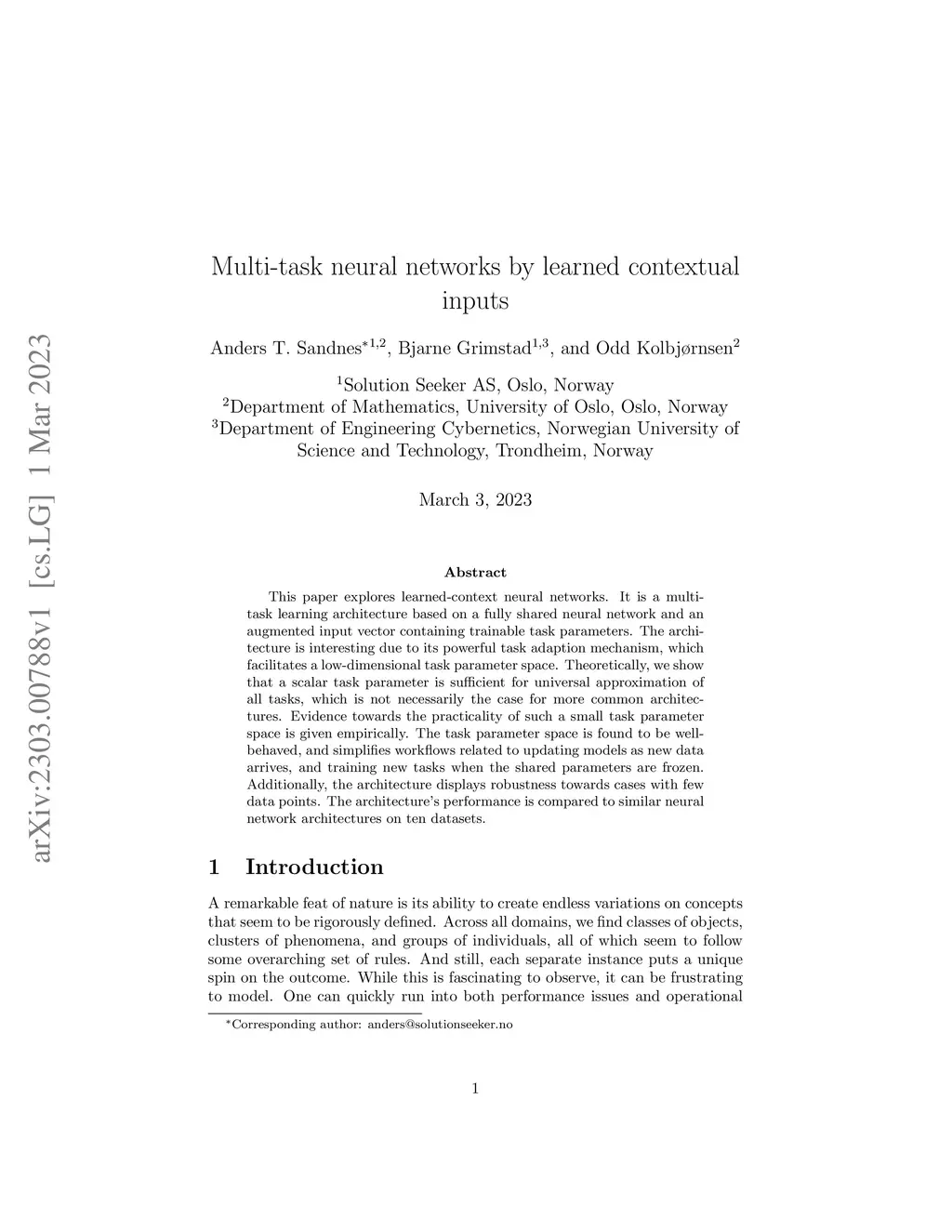 Multi-task neural networks by learned contextual inputs