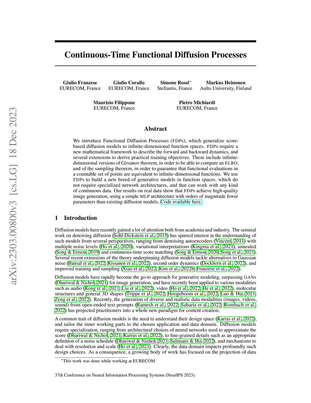 Continuous-Time Functional Diffusion Processes