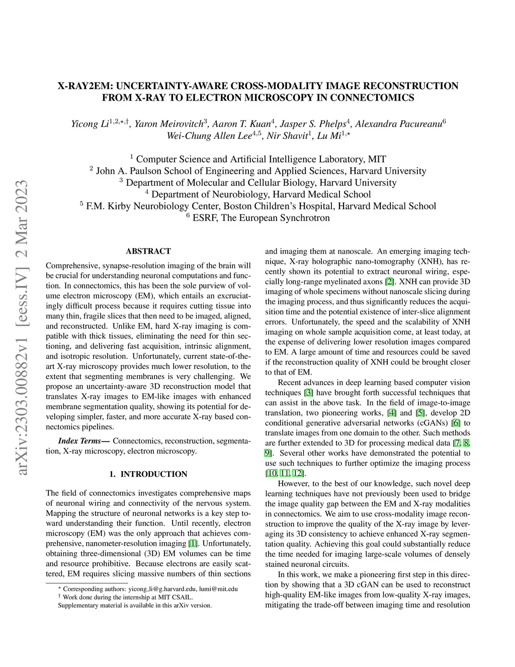 Comprehensive, synapse-resolution imaging of the brain will be crucial for understanding neuronal computations and function. In connectomics, this has been the sole purview of volume electron microscopy (EM), which entails an excruciatingly difficult process because it requires cutting tissue into many thin, fragile slices that then need to be imaged, aligned, and reconstructed. Unlike EM, hard X-ray imaging is compatible with thick tissues, eliminating the need for thin sectioning, and delivering fast acquisition, intrinsic alignment, and isotropic resolution. Unfortunately, current state-of-the-art X-ray microscopy provides much lower resolution, to the extent that segmenting membranes is very challenging. We propose an uncertainty-aware 3D reconstruction model that translates X-ray images to EM-like images with enhanced membrane segmentation quality, showing its potential for developing simpler, faster, and more accurate X-ray based connectomics pipelines.