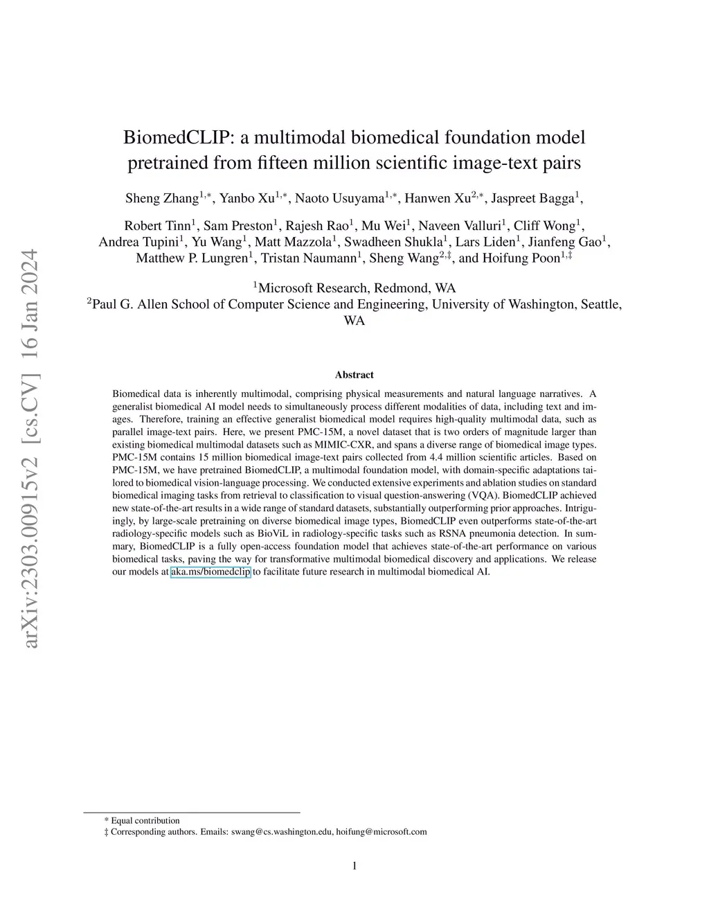 BiomedCLIP: a multimodal biomedical foundation model pretrained from fifteen million scientific image-text pairs