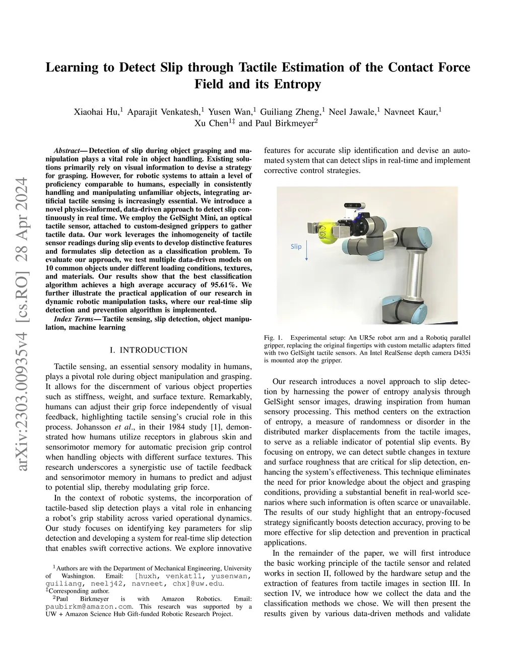 Learning to Detect Slip through Tactile Estimation of the Contact Force