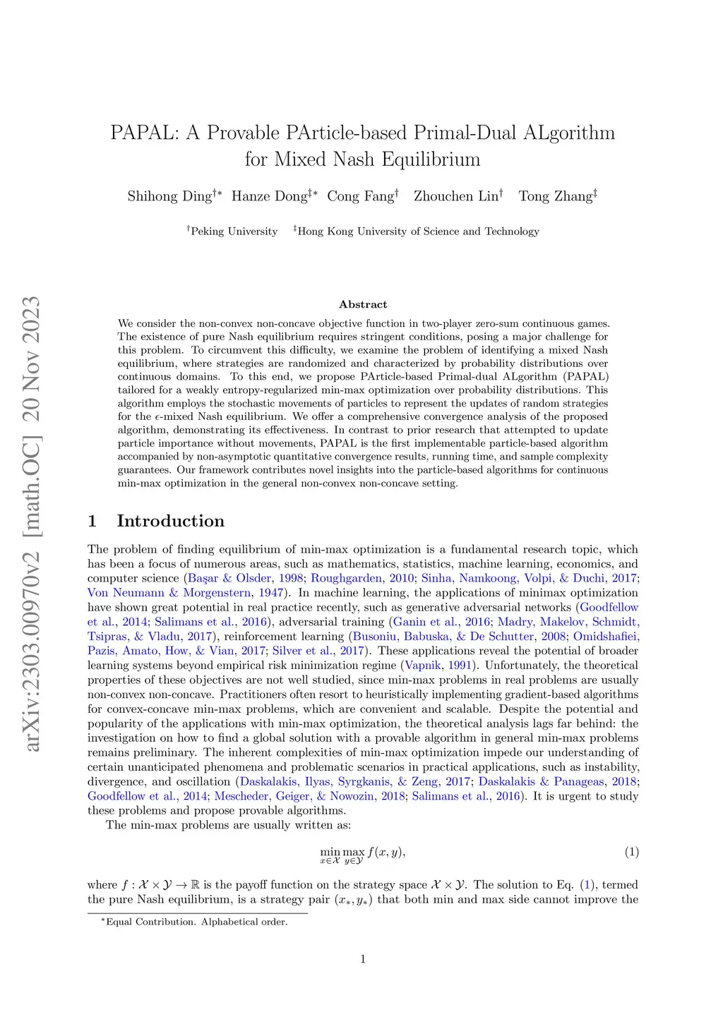 PAPAL: A Provable PArticle-based Primal-Dual ALgorithm for Mixed Nash
