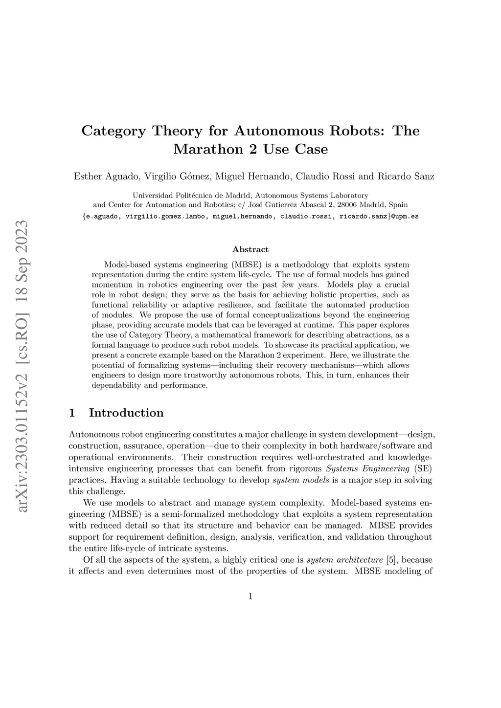 Model-based systems engineering (MBSE) is a methodology that exploits system representation during the entire system life-cycle. The use of formal models has gained momentum in robotics engineering over the past few years. Models play a crucial role in robot design; they serve as the basis for achieving holistic properties, such as functional reliability or adaptive resilience, and facilitate the automated production of modules. We propose the use of formal conceptualizations beyond the engineering phase, providing accurate models that can be leveraged at runtime. This paper explores the use of Category Theory, a mathematical framework for describing abstractions, as a formal language to produce such robot models. To showcase its practical application, we present a concrete example based on the Marathon 2 experiment. Here, we illustrate the potential of formalizing systems -- including their recovery mechanisms -- which allows engineers to design more trustworthy autonomous robots. This, in turn, enhances their dependability and performance.