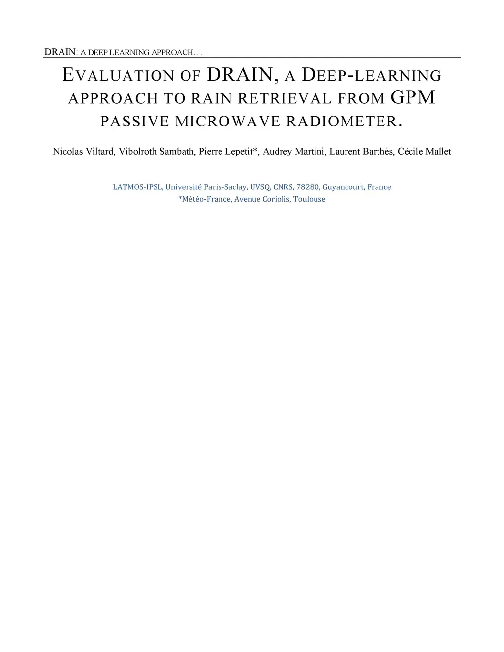 Evaluation of drain, a deep-learning approach to rain retrieval from gpm