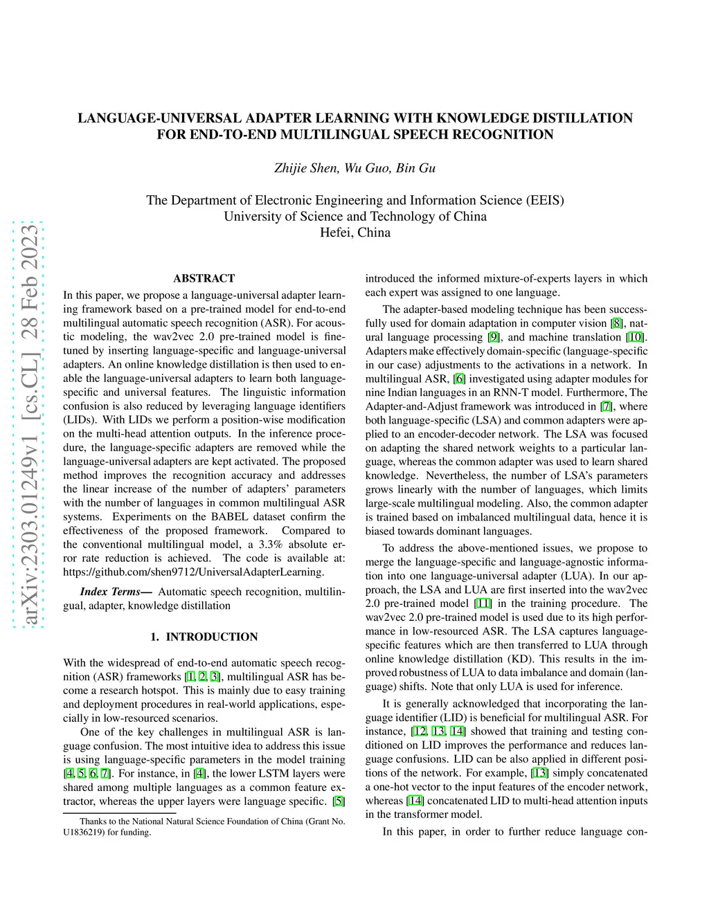 Language-Universal Adapter Learning with Knowledge Distillation for