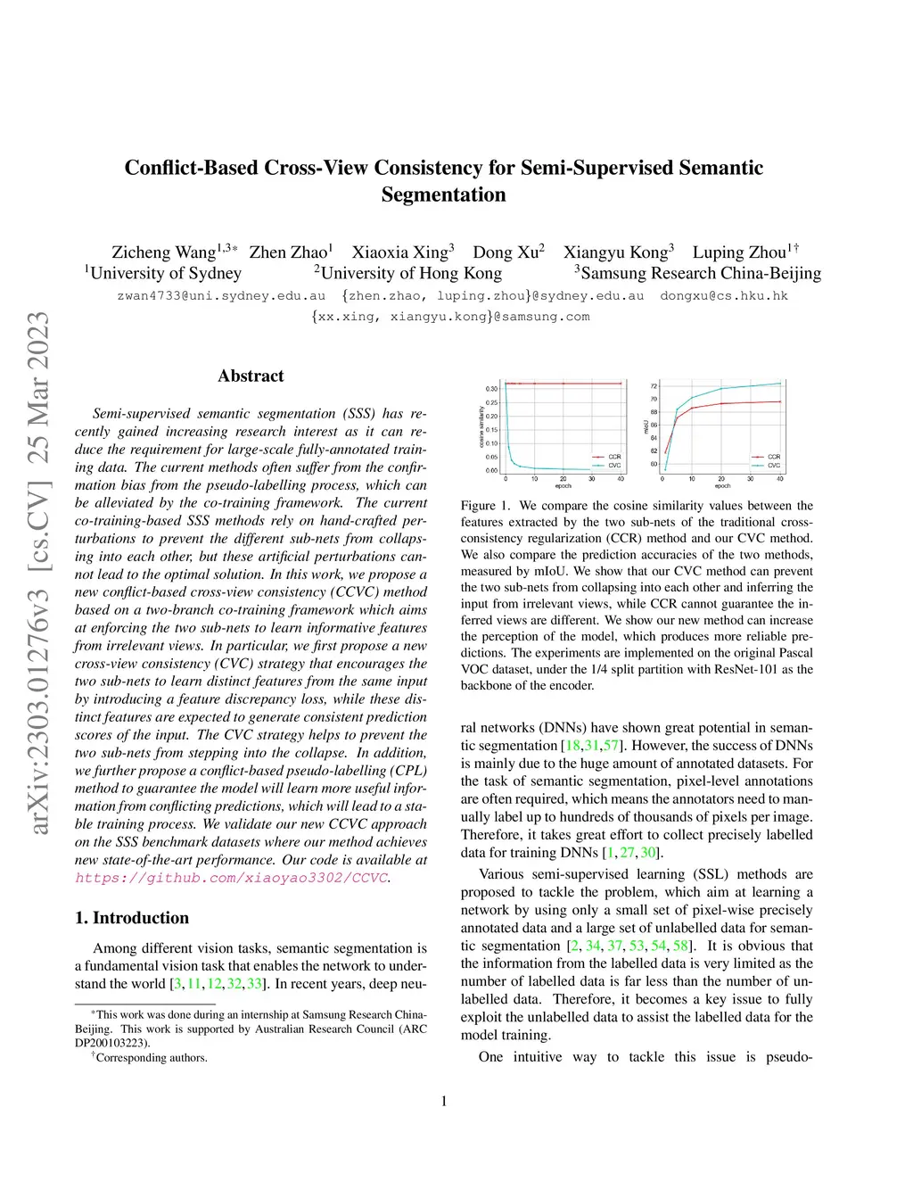 Conflict-Based Cross-View Consistency for Semi-Supervised Semantic