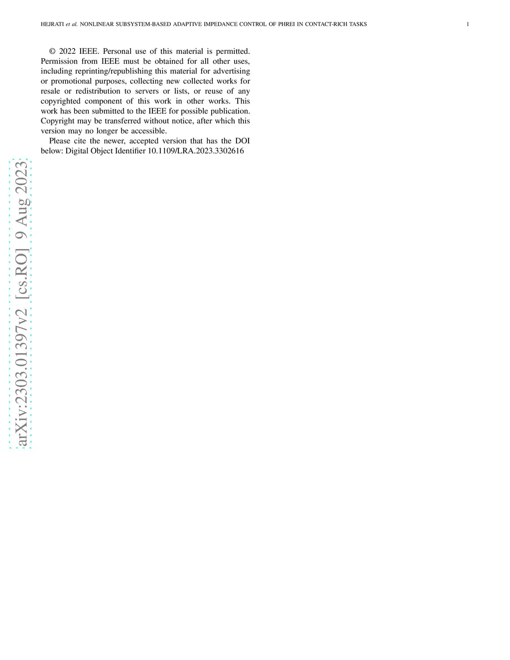 Nonlinear Subsystem-based Adaptive Impedance Control of Physical