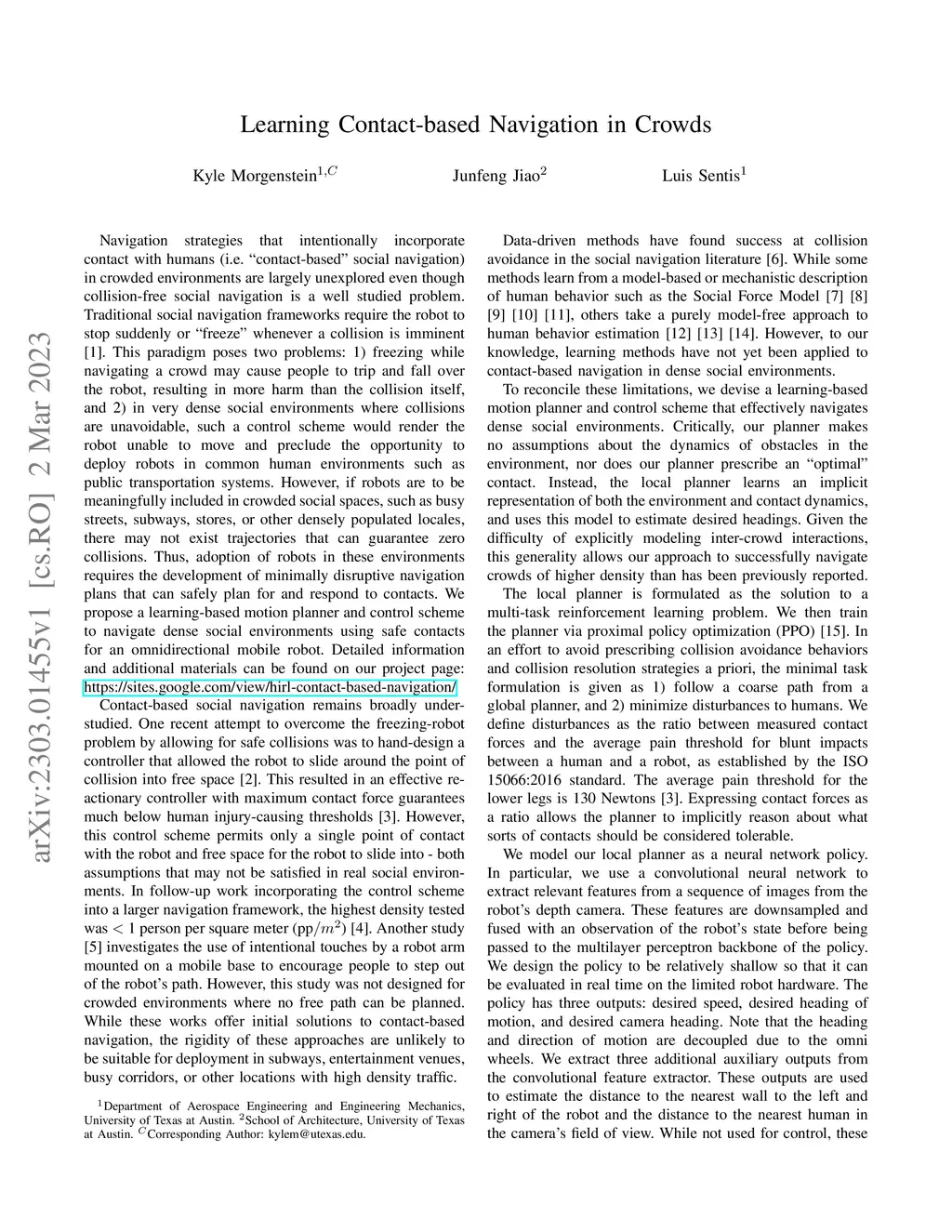 Learning Contact-based Navigation in Crowds