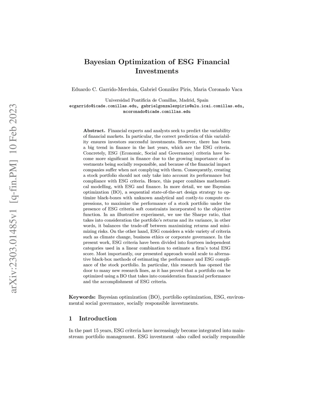 Bayesian Optimization of ESG Financial Investments