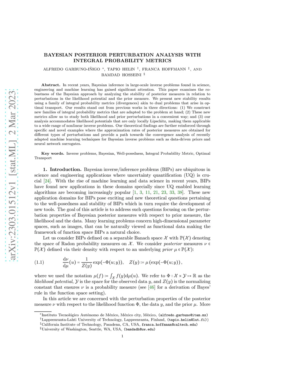 Bayesian Posterior Perturbation Analysis with Integral Probability