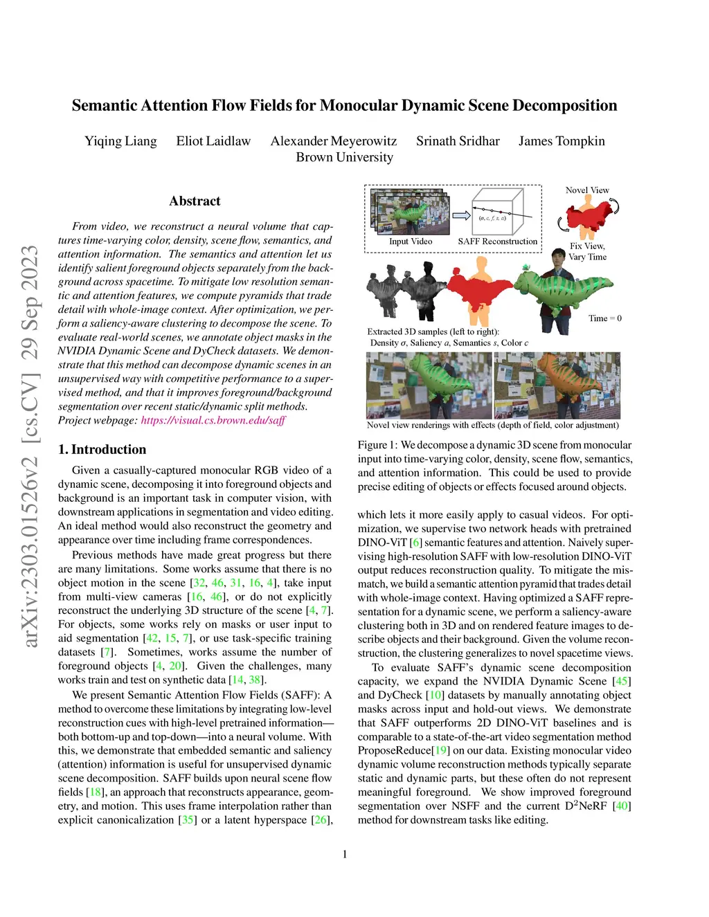 Semantic Attention Flow Fields for Monocular Dynamic Scene Decomposition