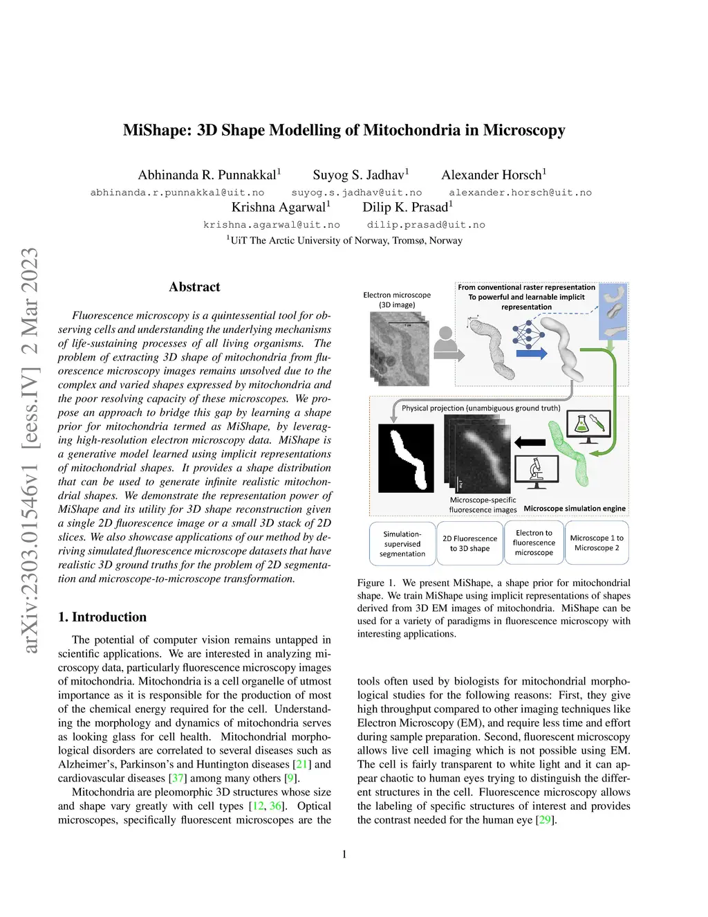 MiShape: 3D Shape Modelling of Mitochondria in Microscopy